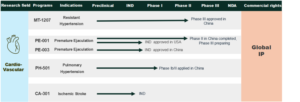 We primarily engaged in the development of novel and potential first-in-class drugs with the potential of becoming paradigm-shifting blockbuster therapies for cardiovascular diseases with large patient populations and significant innovation gaps. We have developed a robust pipeline with five drug candidates: